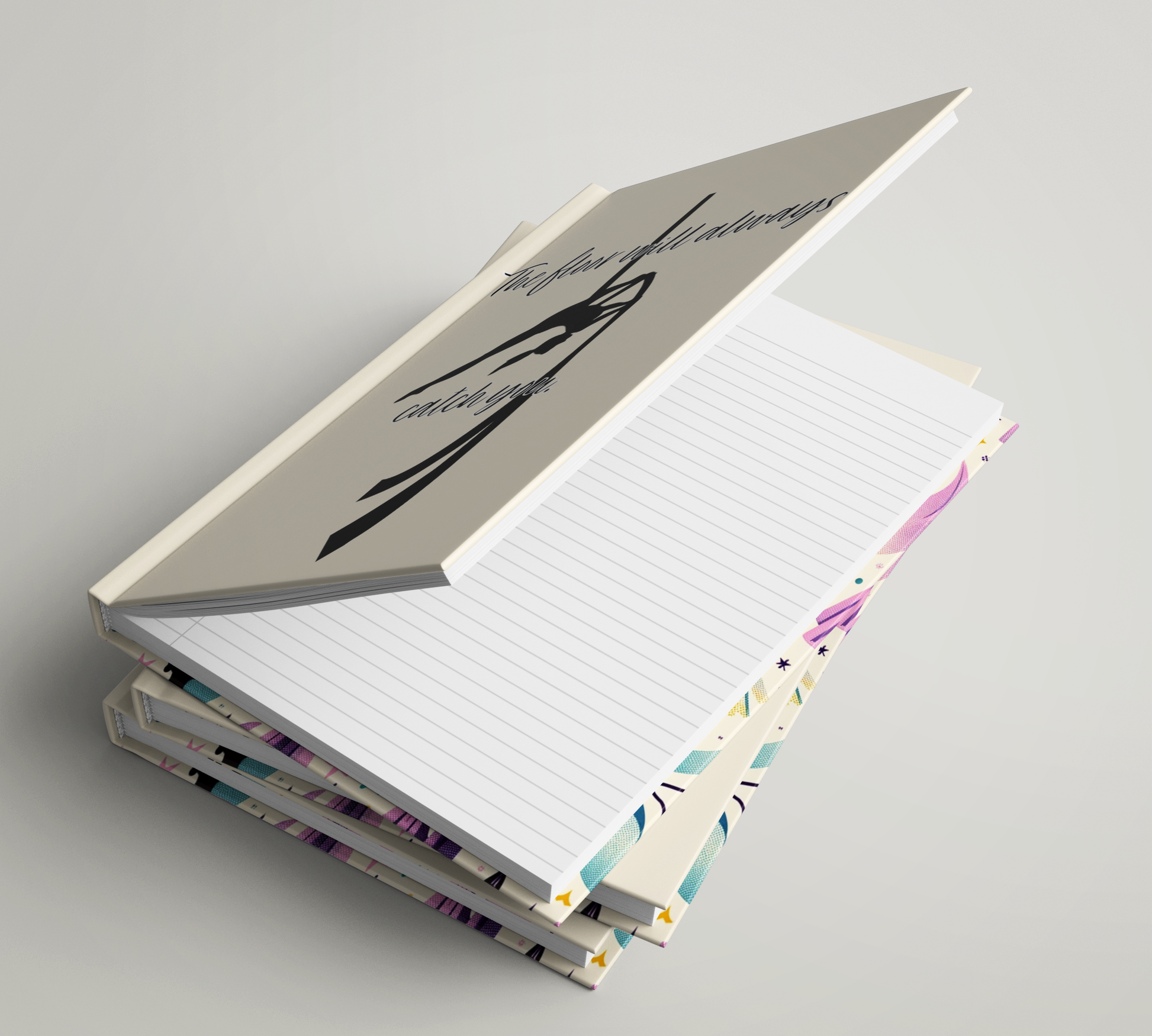 The cover of the notebook is where the magic truly happens. Adorned with the funny and empowering slogan "The Floor Will Always Catch You," it serves as a constant reminder of your strength and dedication to the art of aerial silk. It's not just a notebook; it's a morale booster, ready to lift your spirits whenever you glance at it.