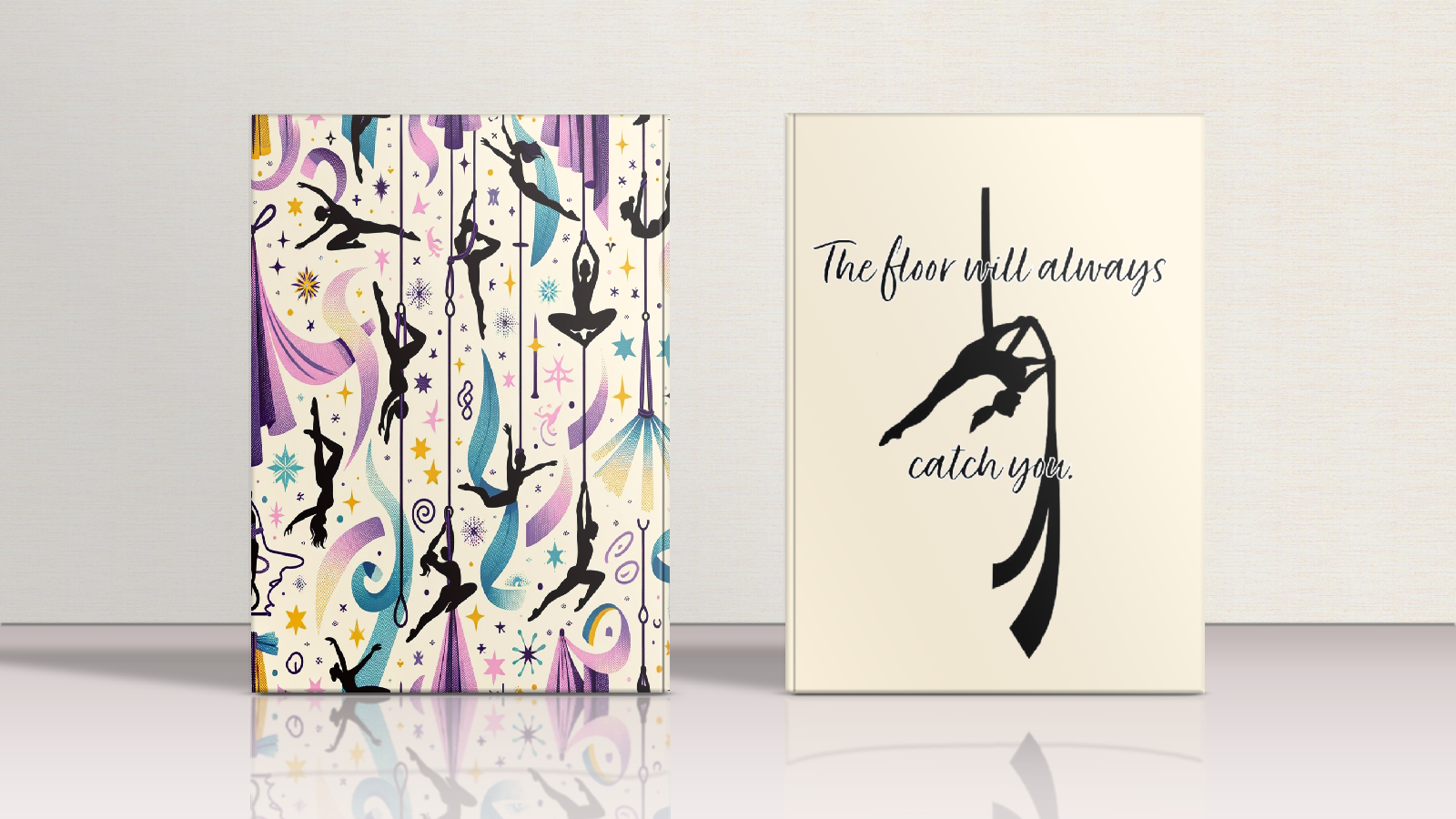 Introducing the ultimate companion for every aerial silk enthusiast - the "The Floor Will Always Catch You" Notebook! This specially designed notebook is not just a tool for jotting down your thoughts and inspirations; it's a testament to your resilience and passion for aerial silk artistry.